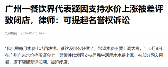 比如:听证会代表餐饮店的老板——黄志辉被网暴,旗下店铺被迫关闭