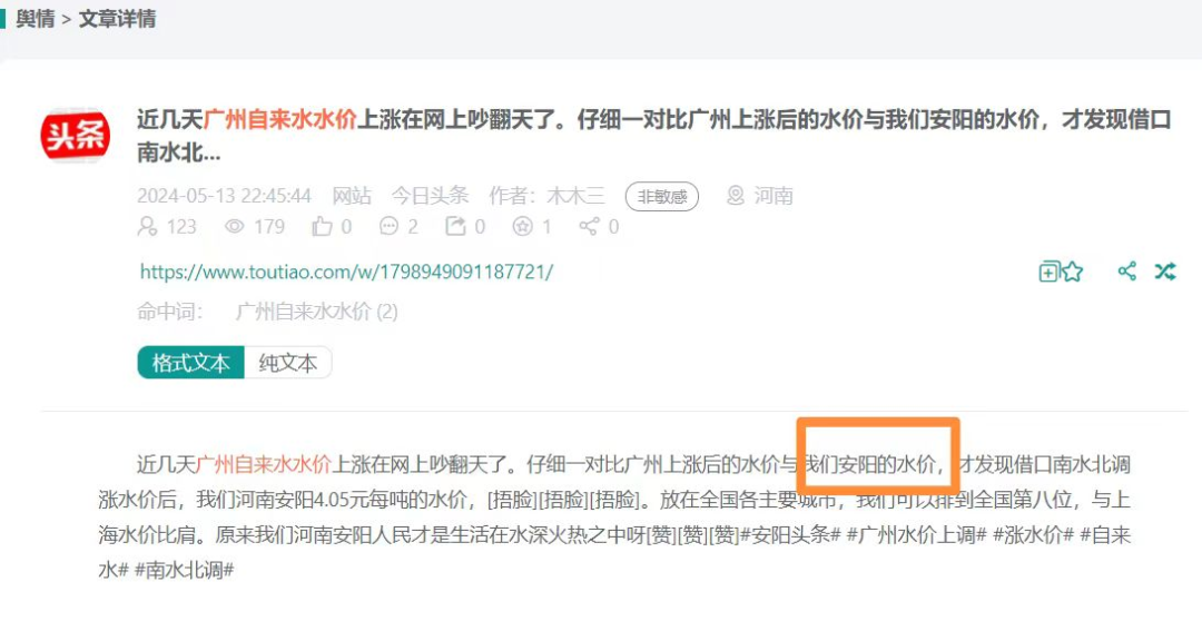 当然,舆情发酵,不可能完全则此想起,我们还需要从现实中的数据逐步分析,得出一个科学合理的判断。我们在介绍舆情管理系统时,结合其它水务舆情案例,一一为大家解读。